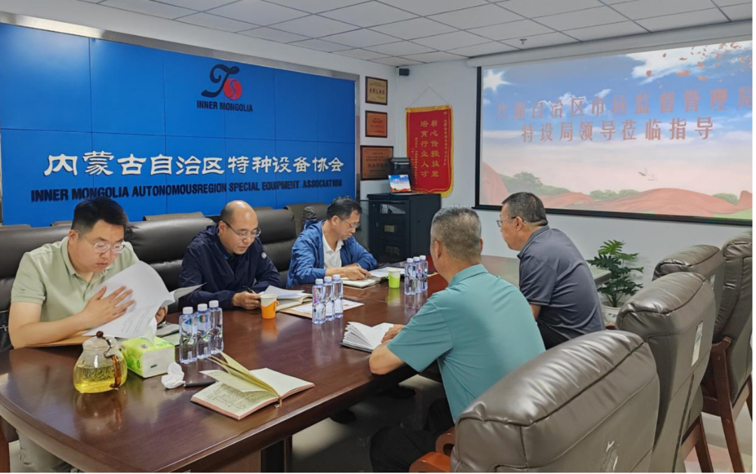 5月29日,自治區(qū)市場(chǎng)監(jiān)管局特種設(shè)備局劉鵬局長、張寧副局長、齊偉主任一行到內(nèi)蒙古自治區(qū)特種設(shè)備協(xié)會(huì)進(jìn)行調(diào)研和工作督導(dǎo)。